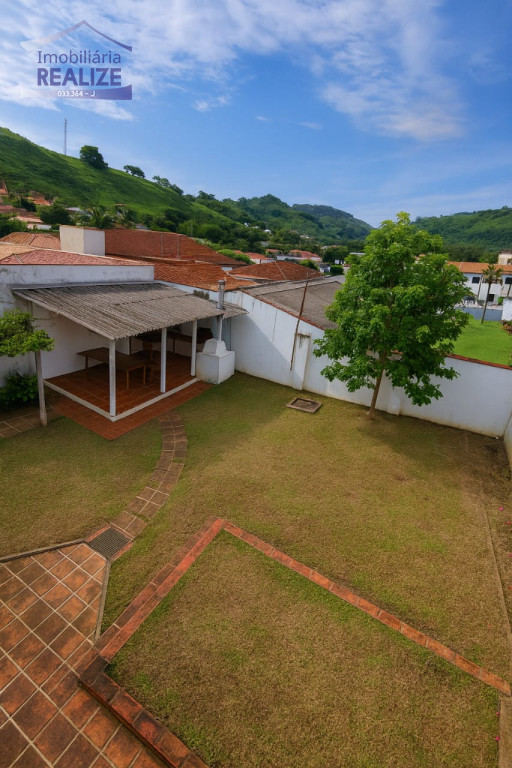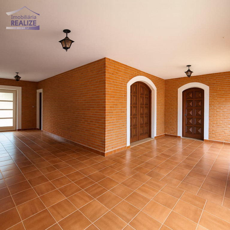 Pavimento inferior: lavanderia grande, quarto para empregada, banheiro, escritório, salão de festas e quintal gramado.